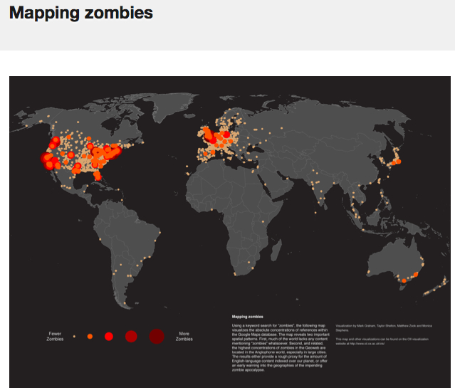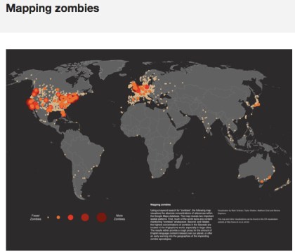 I contacted Mark Graham, one of the creators of the map and asked him why he had chosen to plot the word ‘zombie’? What was the background for this choice?