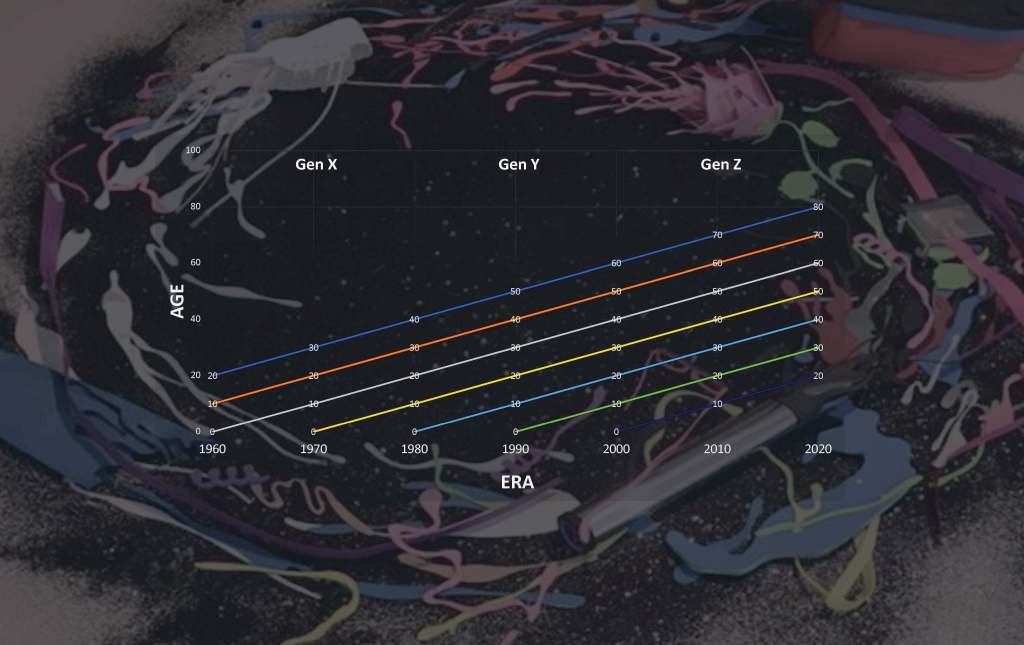 Image: David Burrows, Detail of ‘Diagram of the Event Horizon of a Black Hole (following Susskind’s Holographic Theory): Blind Date Implosion’ (2018) combined with John Cussans’ Inter Generational Matrix (no date).