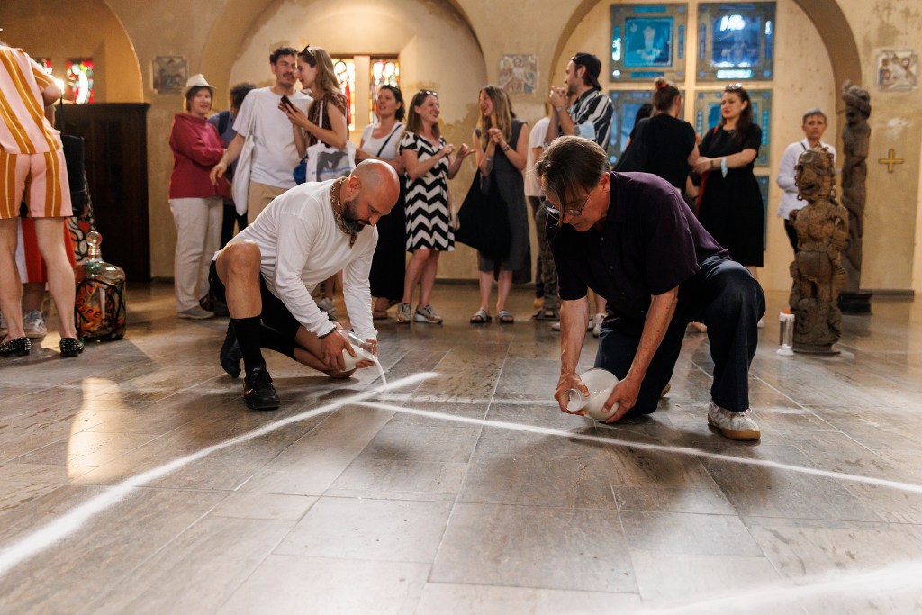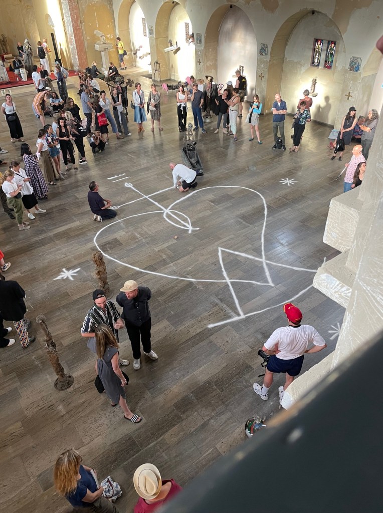 When the drawing was completed we created a candle-lined walkway between the alter and the veve in preparation for the second part of the ceremony; Jann Pase’l Pase & Mache Nap Mache (Walk the Walk and Talk the Talk), the re-creation of a work first made by Roberto in collaboration with Jean-Louis Huhta and Jean Claude Saintillus at the Ghetto Biennale in 2013.