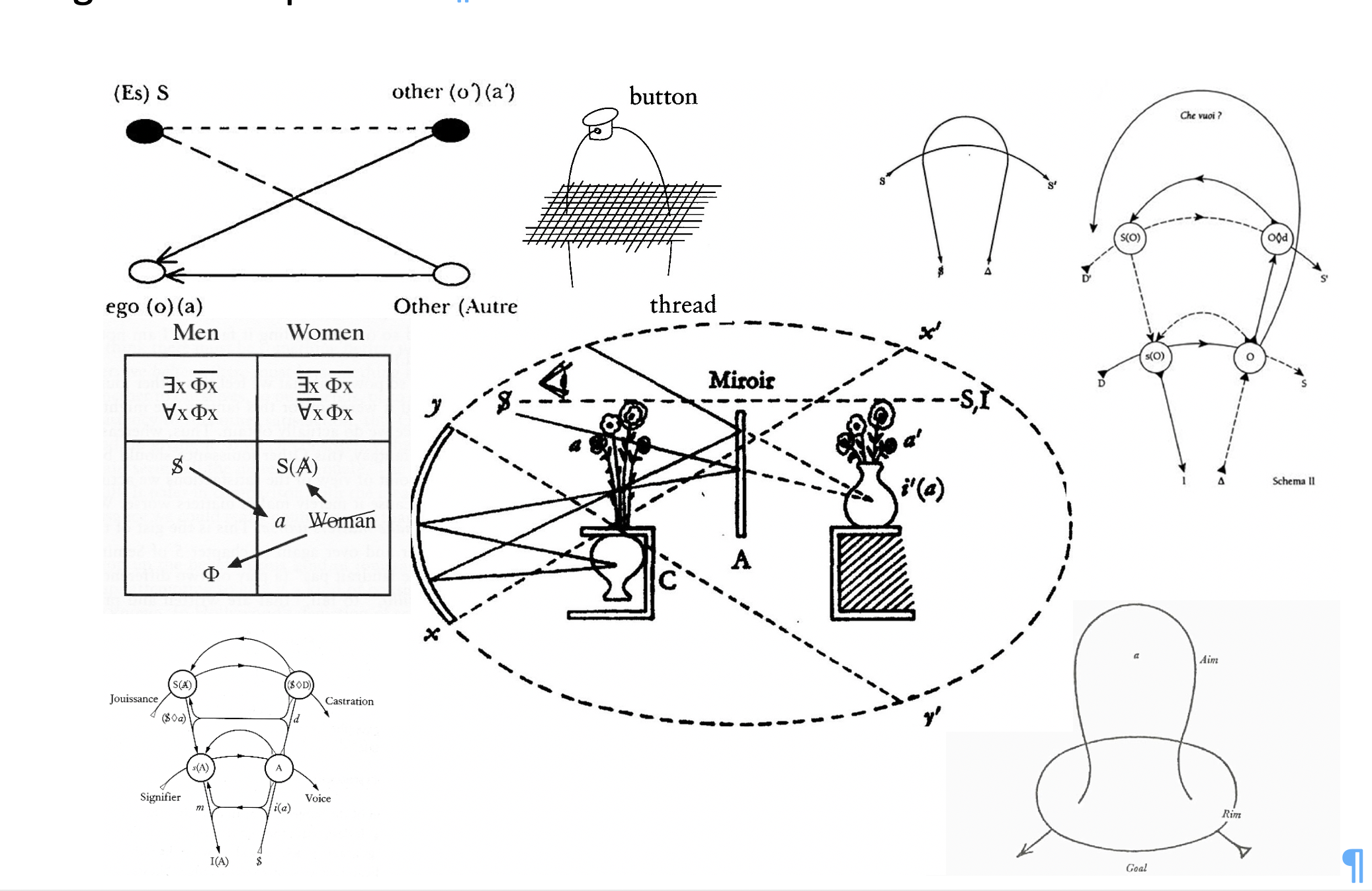The structuralist psychoanalyst Jacques Lacan famously developed a series of schema’s, graphs and mathemes throughout his career to illustrate and illuminate his theories about the Imaginary, Symbolic and Real; the relationship between different kinds of signifying regimes; their role in the psychological development of subjects; and the proto-political dynamics of inter-personal relationships, making him something of an art theoretical diagrammer’s diagrammer. It is likely therefore, that Lacanian schematizations will be significant objects for debates within DRUGG.